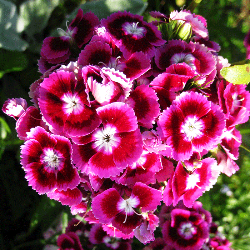Vastustamattoman ihanat, heleät punaisen eri sävyiset ja valkoiset kukat, joiden keskusta huomiota herättävän värikäs. Korkeus noin 45cm.