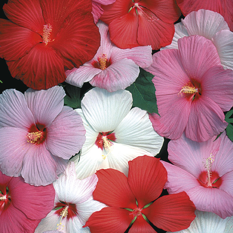 Värisekoitus poikkeuksellisen suuria kukkia, joiden halkaisija saattaa olla jopa 25 cm. Lautasenmallisten kukkien väri vaihtelee valkoisesta ruusunpunaisen ja punaisen sävyihin. Aikaisin kylvetty kasvi saattaa kukkia jopa ensimmäisenä vuotena heinä–syyskuussa, mutta viimeistään kaksivuotiaana. Kork. n. 100 cm.