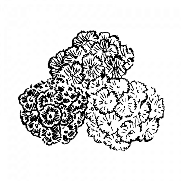 Korkeus n. 60 cm. Upea sekoitus verenpunaisista ja punaisen kirjavista kerrotuista kukista.