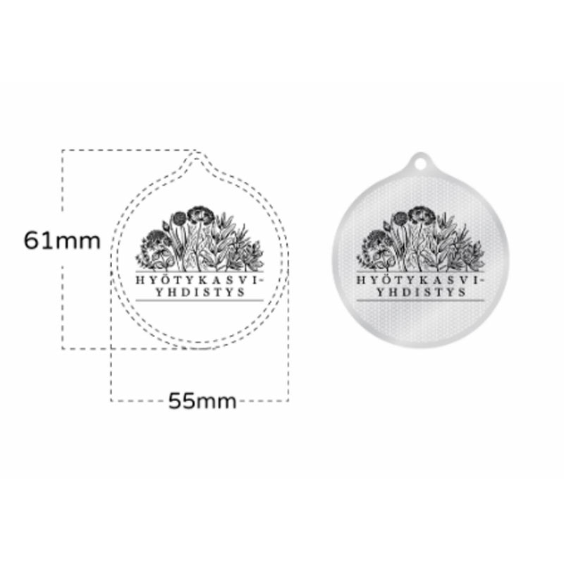 Prismaheijastin Anne Kyanderin piirtämällä Hyötykasviyhdistyksen logolla. Tausta valkoinen.