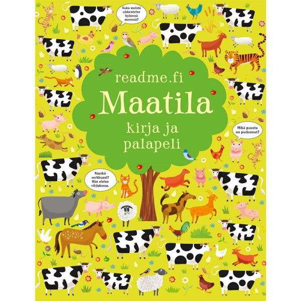 Hauskasti kuvitetun kirjan sivut vilisevät eläimiä ja monia mainioita asioita, joita etsitään, lasketaan ja yhdistetään toisiinsa.