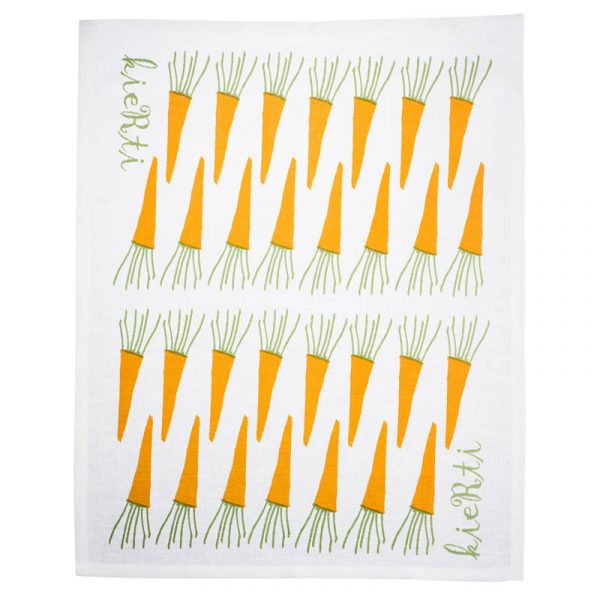 Keittiöpyyhe on puuvilla-pellavaa (50% / 50%). Kutistuma pituussuuntaan noin 7 %, kuositellaan kosteana pituussuuntaan venyttäen. Ripustuslenkki kulmassa. Koko 56×43 cm