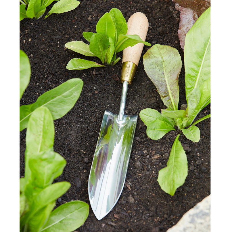 Sophie Conran on suunnitellut kauniit ja toimivat, erityisesti pienikätisten työskentelyä puutarhassa helpottavan työkalusarjan. Puiset osat ovat vahattua pyökkiä, metalliosa yhdistyy puuhun teräs- ja messinkiholkilla.
