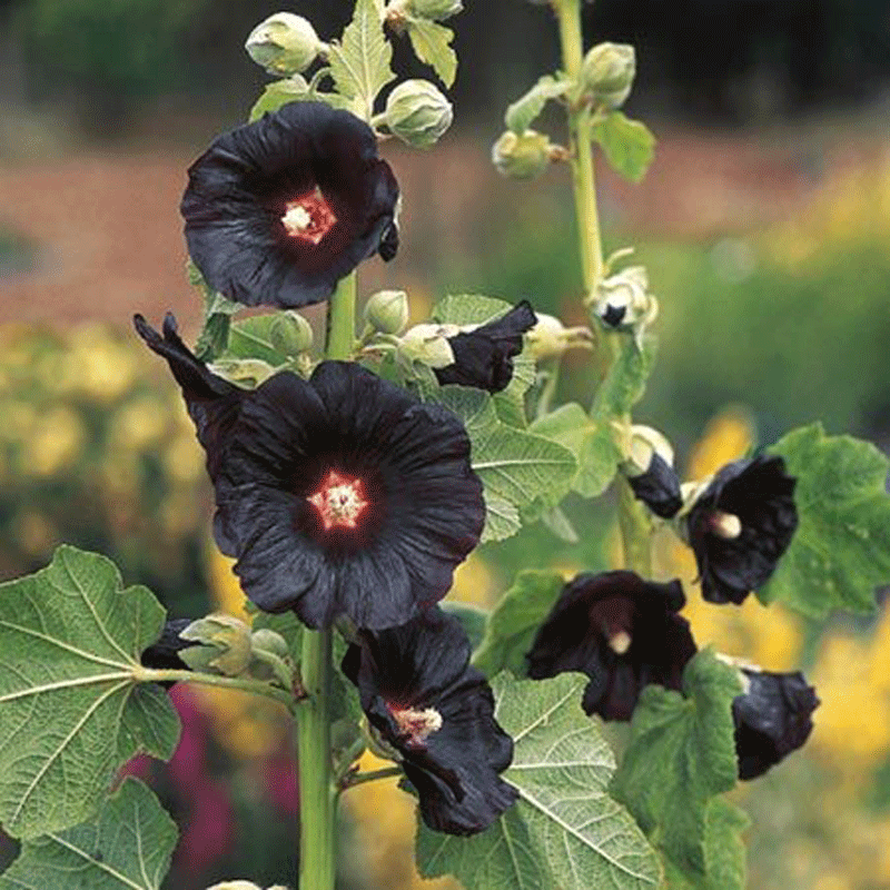 Yksinkertaiset, joskus puolikerrannaiset kukat mustanruskeat. Korkeus n. 150cm. Kukkien lääkearvo suurempi kuin vaaleilla lajikkeilla. Komea, huomiota herättävä!