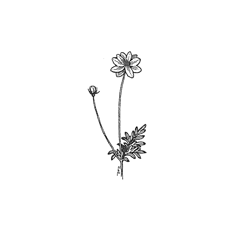 Meillä harvinainen. Keltaiset kukat (5-6cm) pienempiä kuin punakosmoskukalla. Karvaiset lehdet myös vähemmän liuskoittuneet. Korkeus n. 70cm. Värjäyskasvi, kukista saadaan keltaista väriä. 1g = noin 120 siementä.