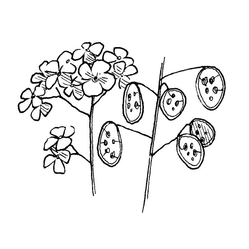 Viljely aloitettiin Sveitsissä 1830. Tuoksuvat kukat violetit tai valkoiset. Kukkii kesä- heinäkuussa. Pysty ja tanakka varsi. Korkeus n. 90cm. Siementen tuleennuttua ja varistua, jäljelle jäävät hopeanhohtoiset, kauniit soikeat lidut, jotka kerätään kuivakukiksi. 1g = noin 50 siementä.