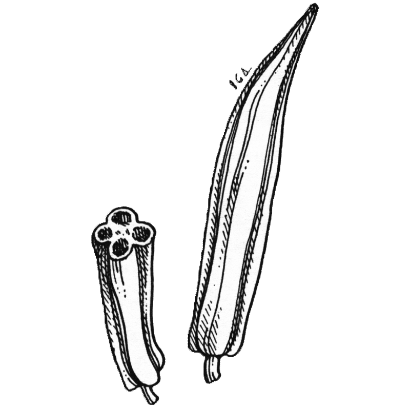 Yv. Kuuluu malvakasveihin. Alkuperästä ei olla varmoja, mutta oletetaan sen olevan sekä intialaista että afrikkalaista alkuperää. Viljellään hedelmien vuoksi. Hedelmä on 10-25cm pitkä, kulmikas ja pysty kaventuen kärjestään teräväksi ja sisältää runsaasti siemeniä. Afrikassa ja Aasiassa laajoilla alueilla okra kuuluu jokapäiväiseen ruokavalioon.