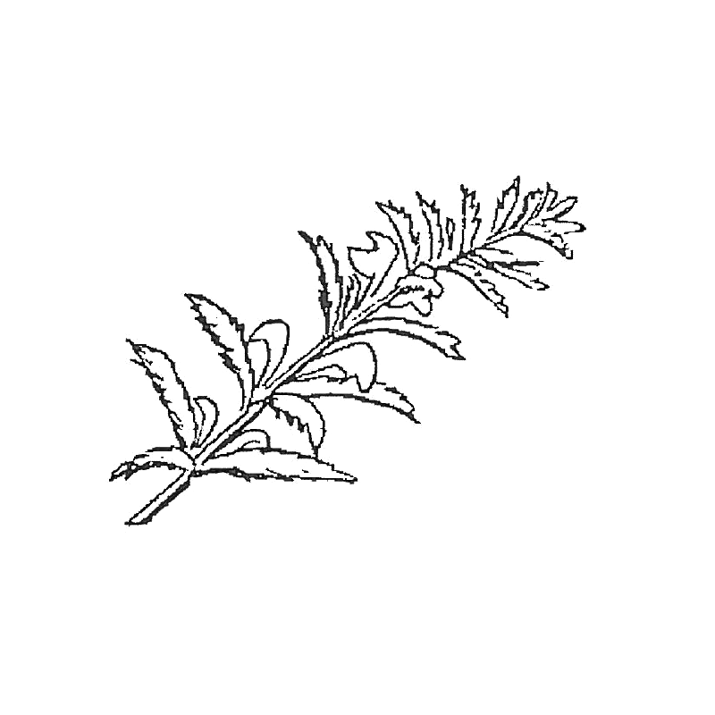 melissa”. Pystykasvuinen ja haarova. Vastakkaiset lehdet sahalaitaiset. Kukat terttumaisissa, tiheissä latvakukinnoissa. Hyvä mesikasvi perhosille!